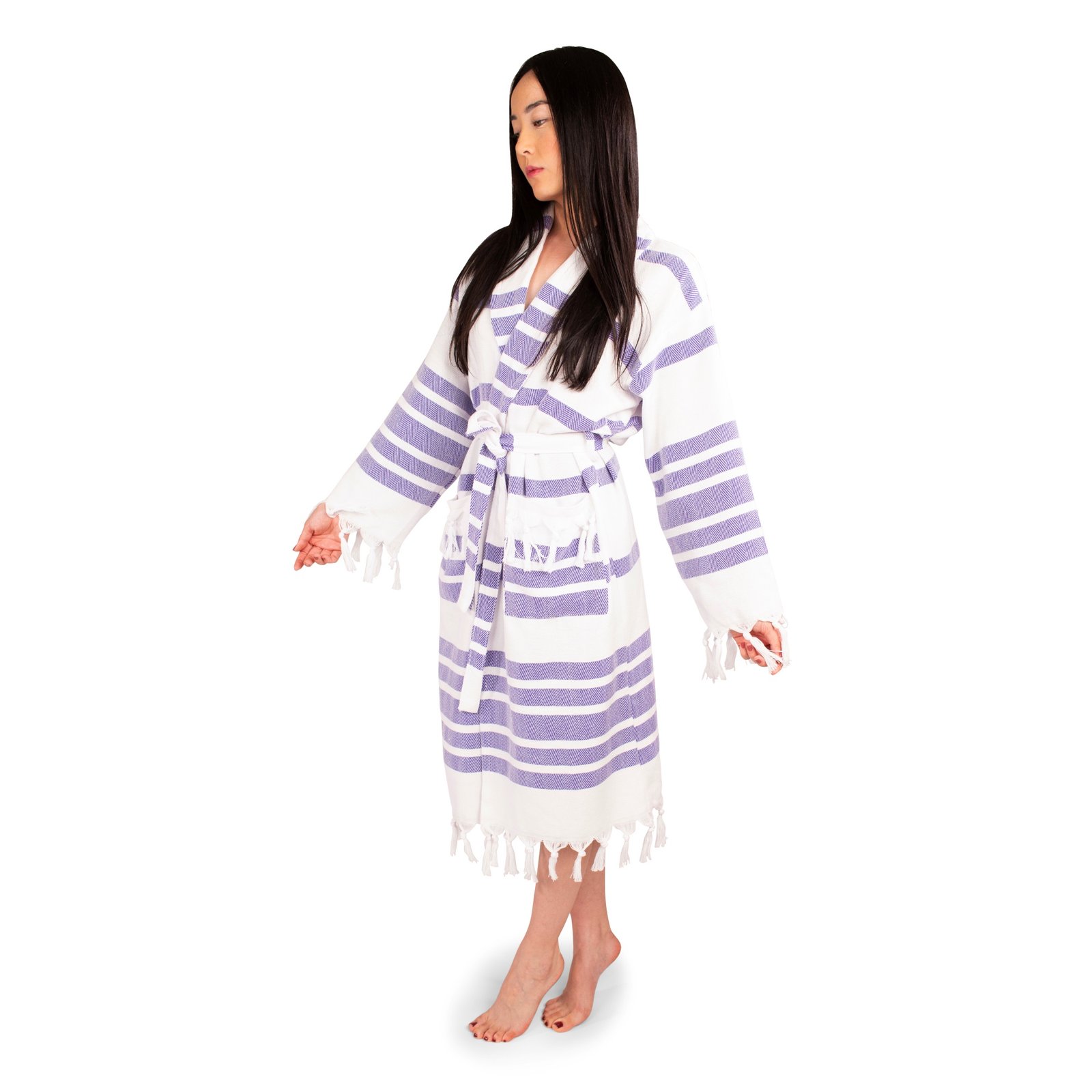Peignoir fouta peshtemal haut de gamme en coton turc. Séchage record, poids substantiel de 800g. Unisexe S-XL.