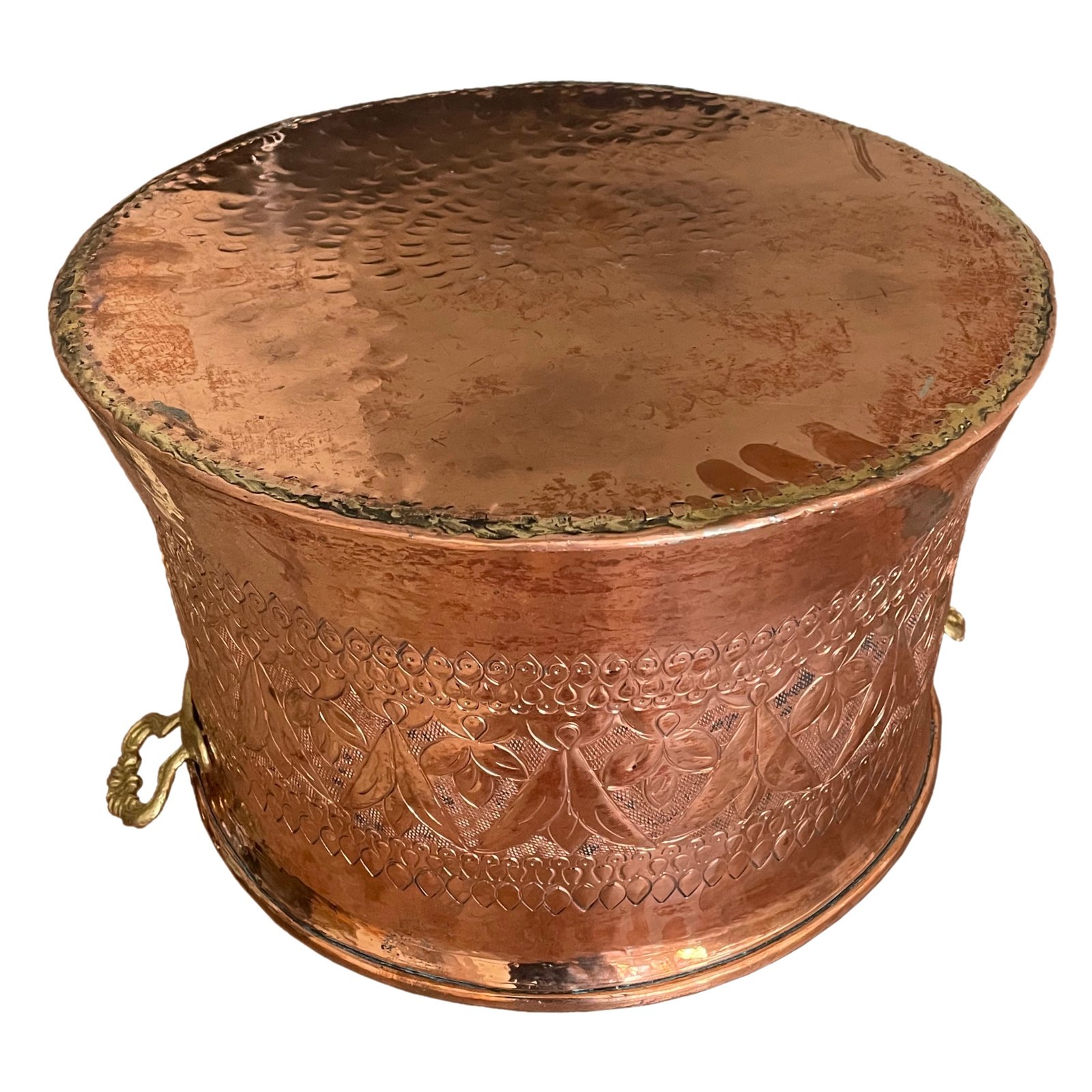 Seau à mousse artisanal en cuivre pur martelé à la main avec motifs traditionnels. 22×34 cm. Artisanat turc authentique. MOQ 2 pièces.