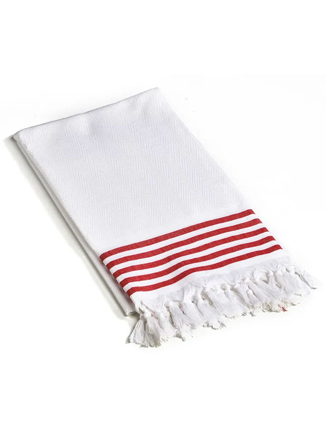 Турецкое полотенце Пештемаль – Белое с красной полосой