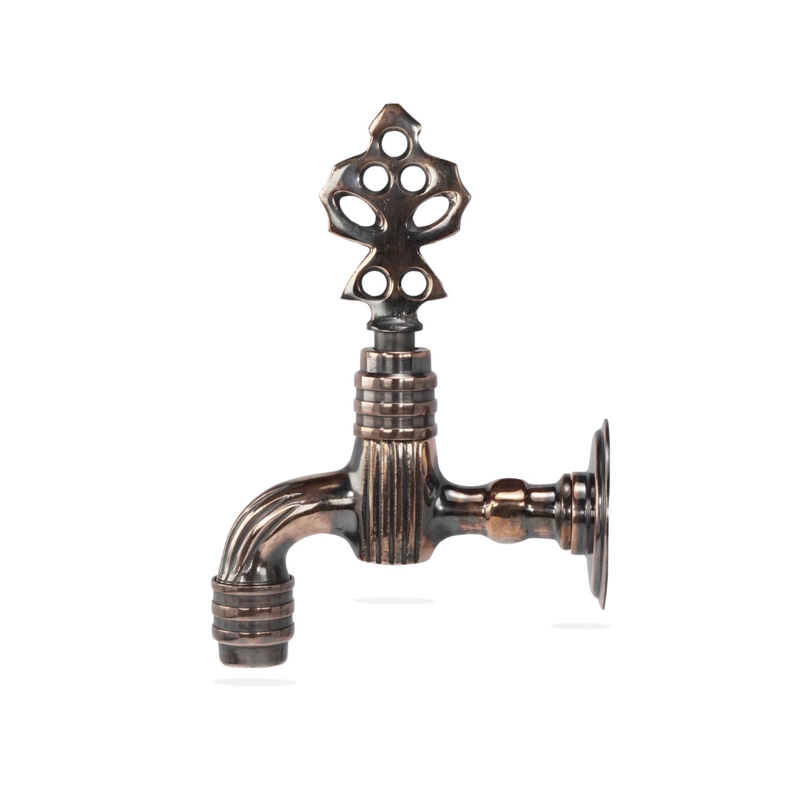 Zarif kule kol, ince Osmanlı motifleri ve sıçramayı önleyen filtreli antik pirinç Osmanlı hamam musluğu. 1/2 inç bağlantı, 550 g. Oteller, tarihi spalar ve hamam projeleri için B2B toptan tedarik. MOQ 10 adet.
